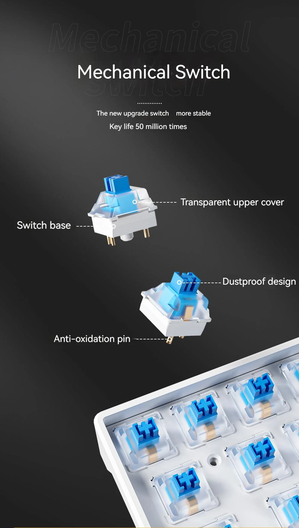 4 The mechanical shaft has rapid trigger response, smooth rebound, and stable and consistent tapping feel.