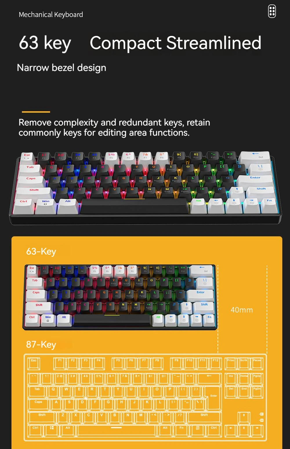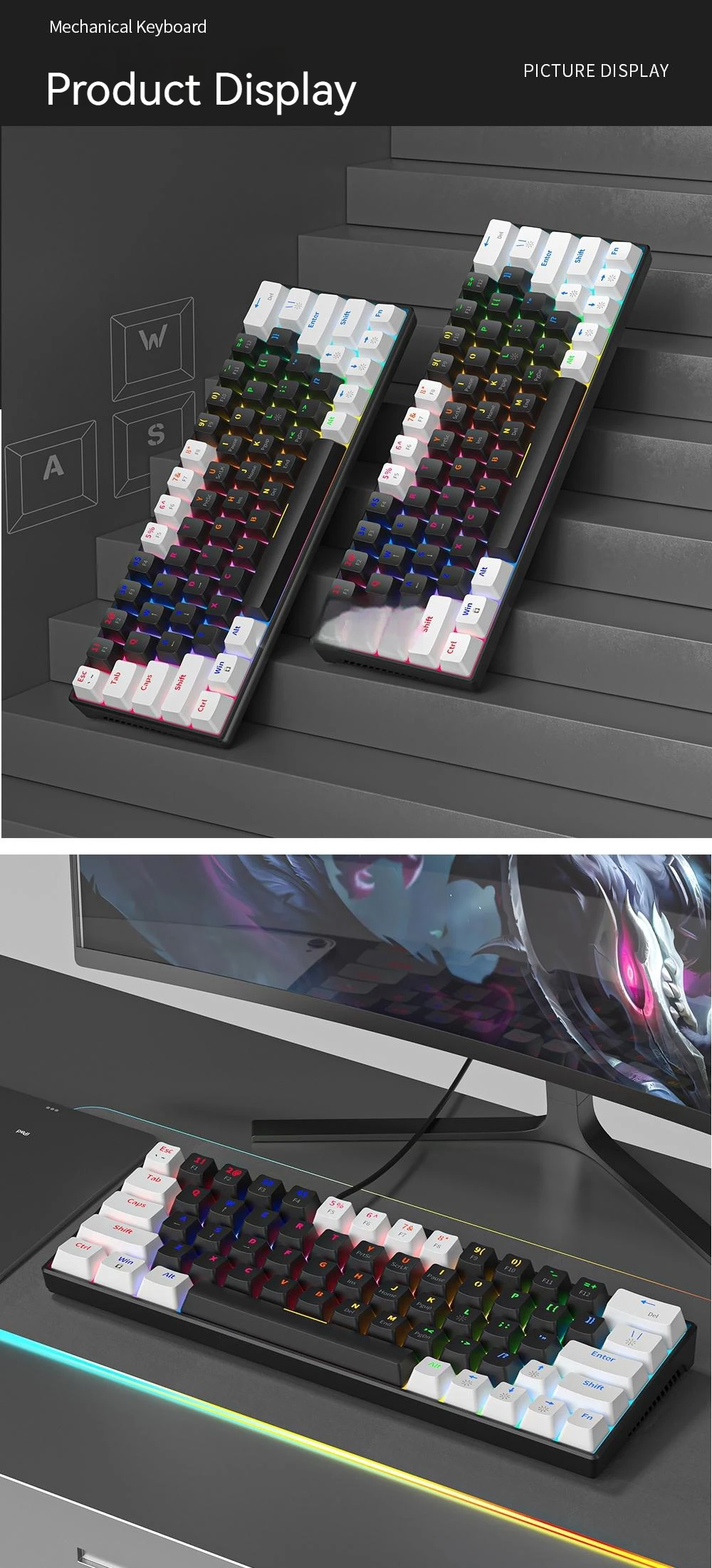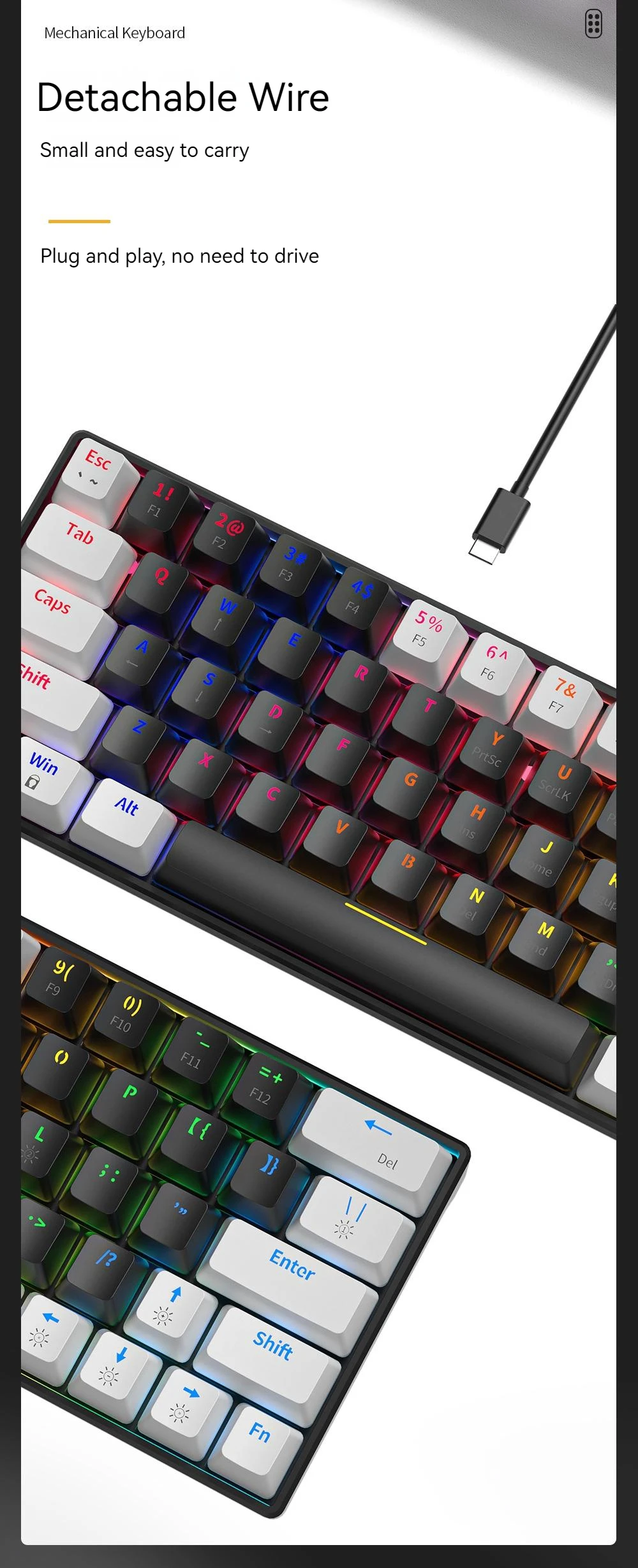 ZA646 Wired Gaming Mechanical Keyboard For Gamer Russsian/English 63 Keys Backlit Hot-swap Mini Game 60% Keyboard For travel
